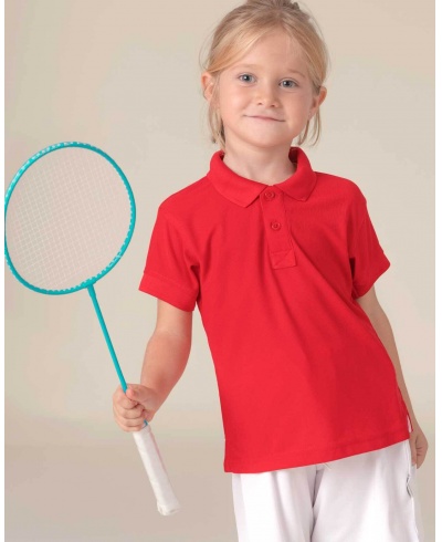 Einsatz mit zwei Knöpfen. Pikee-Gewebe. Kragen in Kontrastfarbe. Seitliche Öffnungen in Kontrastfarbe.