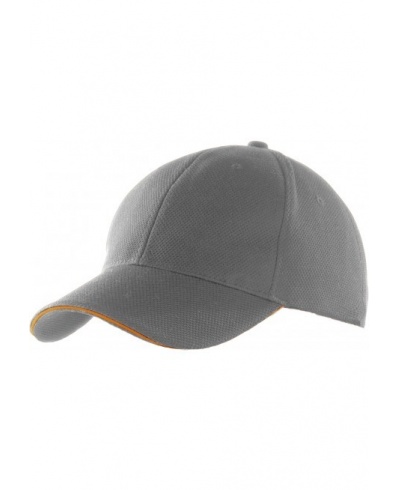 100% Polyester-Piqué. Sechs Felder. Lüftungsösen. Zwischenstück in Kontrastfarbe. Stirnband innen gepolstert für optimalen Tragekomfort. Verstellbarer Klettverschluß.