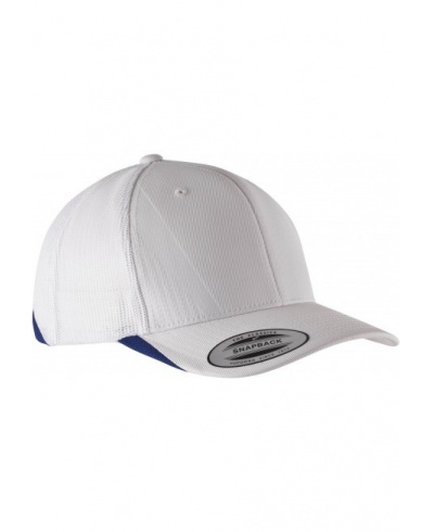 66 % Polyester / 30 % Polyamid / 4 % Baumwolle mit Polyamid-Netz. 6 Felder. Gebogener Schirm und Innenverstärkung an den vorderen Feldern für Formbeständigkeit. Flexfit® Cool & Dry Technologie für mehr Komfort und optimale Feuchtigkeitsaufnahme am elastischen Innenband. Kontrastfarbene Einsätze an Schirm und Netz. Kunststofflasche zur Größenverstellung.
