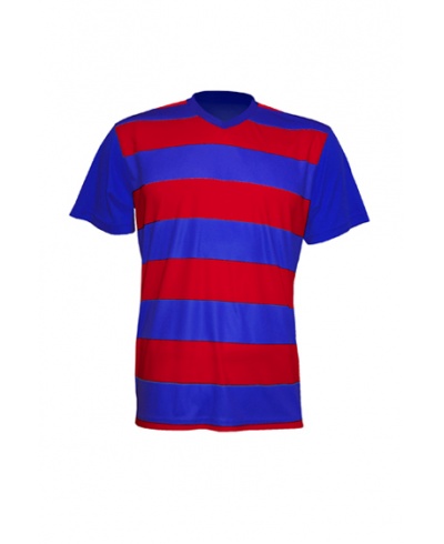 T-Shirt mit horizontalen Streifen für Kinder und Erwa- chsene. V-Ausschnitt.