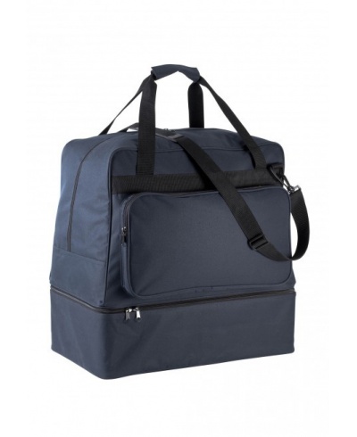 Sporttasche aus 600D Polyester mit doppelter PVC-Beschichtung, 90 Liter. Fester, abnehmbarer Boden aus PP mit Kunststoff-Standfüßen. Reißverschlusstasche vorne zur leichteren Veredelung, Kartenhalter, abnehmbarer Schulterriemen mit Silikonpolster. Fester Boden im Lieferumfang enthalten.