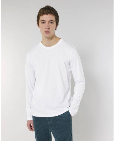 Gewicht: 180 g/m²; Material: 100% GEKÄMMTE RINGGESPONNENE BIO-BAUMWOLLE, SINGLEJERSEY, VORGEWASCHEN, NORMALE PASSFORM; Eingesetzte Ärmel, 1x1 Rippstrick am Halsausschnitt, Abgesetztes Nackenband, Breite Doppelabsteppung an Ärmelenden und unterem Saum