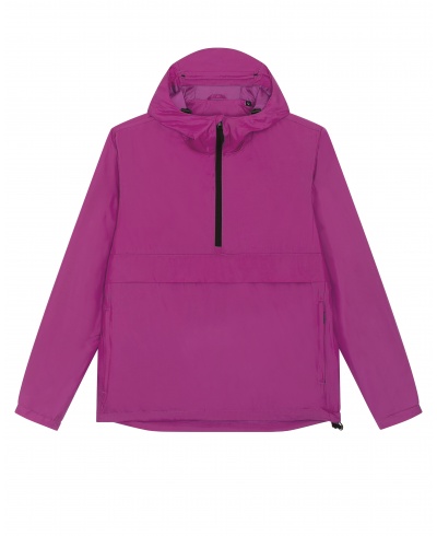 Material: 100% recyceltes Polyester, fluorfreie DWR; Gewicht: 75g/m²; Mittlere Passform, eingesetzte Ärmel, längere Rückenlänge mit abgerundetem Saum zum Schutz, unterer Saum mit verstellbarem Kunststoffstopper und elastischer Kordel, versiegelter Kapuzenschirm, doppellagige Kapuze mit verstellbarem Kunststoffstopper und elastischer Kordel innen, umgekehrter Nylon-Reißverschluss in der Mitte vorne mit Kinnschutz, Leistentaschen mit Reißverschluss und zusätzlichem Grosgrain-Puller, nicht funktionelle Klappe vorne und hinten, halbelastische Ärmelbündchen, Halbmond aus gleichem Stoff am Nacken, Innenreißverschluss am unteren Saum und Innenschlaufe mit Druckknopf am Armloch für einfachen Zugriff für Brustschmuck; Zertifikate: Global Recycled Standard (GRS), Fair Wair, STANDARD 100 by OEKO-TEX®, Peta - Approved VEGAN