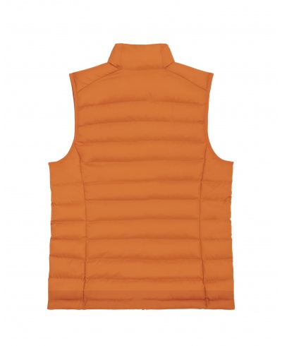 Material: 100 % recyceltes Polyester, fluorfreie DWR; Gewicht: 75g/m²; Taillierter Schnitt, ärmellos, hoher Kragen, umgekehrter Nylon-Reißverschluss vorne in der Mitte, Leistentaschen mit Reißverschluss und zusätzlichem Grosgrain-Puller, elastisches Band am Armloch, vollständig gesteppt, Seiteneinsätze für eine bessere Form, innen eingefasste Nähte, unterer Saum mit verstellbarem Kunststoffstopper und Gummizug Kabel; Zertifikate: Global Recycled Standard (GRS), Fair Wair, STANDARD 100 by OEKO-TEX®, Peta - Approved VEGAN
