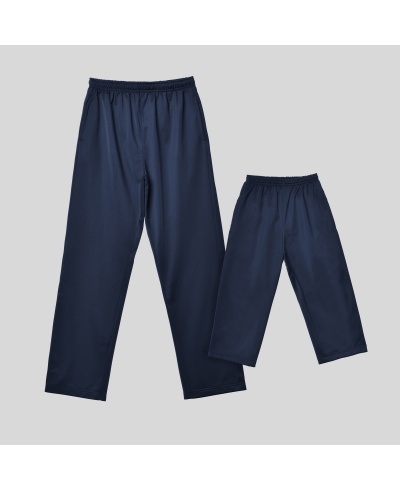 Gerade geschnittene Hose. Zwei Seitentaschen. Elastisches Bündchen mit Kordelzug.