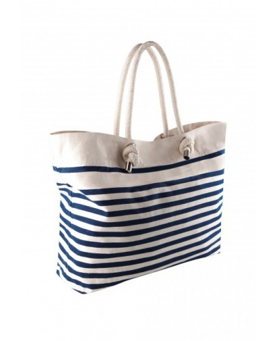 Große Strandtasche im Marinestil aus Bauwoll-Canvas, 310 g. Henkel aus Baumwollkordeln, Innentasche mit Reißverschluß, Druckknopfverschluß. SBS-zip