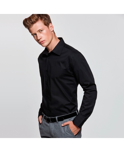 Stretch Langarm Hemd. Verstärkter Kragen. Manschetten mit zwei Knöpfen. Abgerundeter Saum. Pflegeleicht.