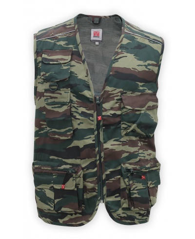 Summer vest, zip fastening, multi-front pocket system with reversible badge holder, reflex piping on the shoulders and back, roomy back hunting pocket. Contrasting colour dry-tech lining, open for easier printing and embroidery