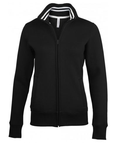 80% gekämmte Baumwolle /20% Polyester "LSF". Vorgeschrumpftes, ungebürstetes Fleece. Silikon gewaschen. Taillierter Schnitt und seitliche Rippstrickeinsätze. Nackenband Ton-in-Ton (Farbton White mit kontrastierendem Nackenband in Oxford Grey). Kragen mit Kontrast-Zierstreifen. Zwei Fronttaschen. Gerippt an Ärmeln und Bund. YKK®-Reißverschluß.
