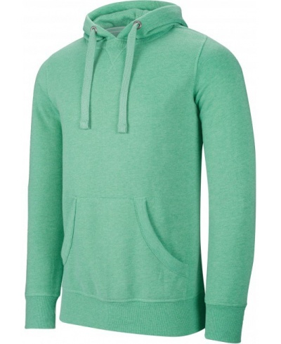 60% Polyester / 40 % Baumwolle. Gebürstetes, leicht gemustertes Fleece. Gefütterte Kapuze mit Wabenstruktur. Nackenband am Kragen. Kängurutasche. Strickbündchen an Ärmeln und Saum. Kein Markenetikett, nur Größenkennzeichnung am Kragen für eine leichtere Veredelung.