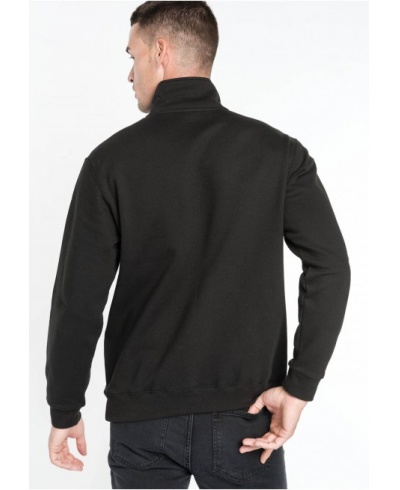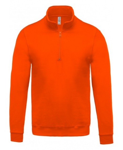 80 % Baumwolle / 20 % Polyester. Gebürstetes Fleece. Set-in-Ärmel. Schlauchware. Reißverschluss am Kragen und Nackenband. Saum und Ärmelbündchen in Rippstrick.