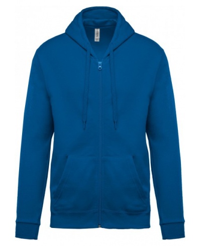 80 % Baumwolle / 20 % Polyester. Gebürstetes Fleece. Set-in-Ärmel. Schlauchware. Nylon-Reißverschluss. Gefütterte Kapuze mit Ton-in-Ton-Kordelzug. Kängurutaschen. Strickbündchen an Ärmeln und Saum.