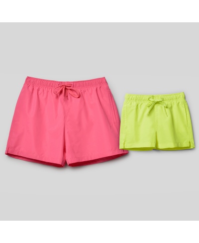 Badeshorts. Kordelzug am Bund. 2 Seitentaschen. Aufgesetzte Gesäßtasche mit Patte. Doppelnähte, Seitenschlitze. Seitentaschen mit Netzfutter.
