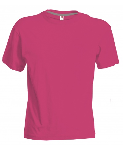 Kinder-T-Shirt mit Rundhalsausschnitt, kurzärmelig, Feinripp-Kragen 1,5 cm aus Spandex-Mischgewebe mit Kappnaht an der Vorderseite, Verstärkungsband in Kontrastfarbe von Schulter zu Schulter, das im Kragen sichtbar ist, Stretchnähten, Rundstrick