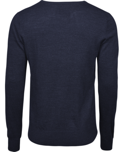 Ein klassischer Strickpullover mit V-Ausschnitt aus einer hochwertigen italienischen Merino/Polyacryl-Mischung. Die gerippten Details und der Ausschnitt machen es zur perfekten Kombination aus einem Hemd und einem coolen T-Shirt.