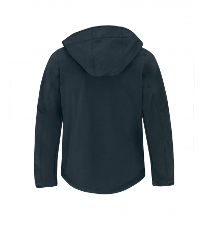 Außen: 94% Polyester, 6% Elasthan • Mittelschicht: atmungsaktive Membran mit Mikroporen • Innen: 100% Polyester, Antipilling-Fleece bzw. Polyester-Netzfutter • Größenverstellbare, abnehmbare Kapuze • Modischer, umgedreht eingenähter Full Zip • Windschutzblende innen mit Kinnschutz • Angesetzte Ärmel • Bündchen mit Klettverschluss • Eingrifftaschen • Hinten verlängerter Bund mi Kordelzug und Stoppern • Veredelungszugang auf linker Brustseite.