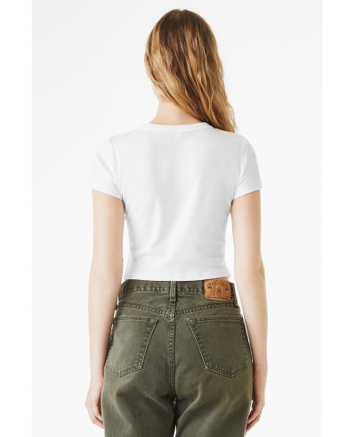 Klassisches Kurzarm-T-Shirt – Dieses Modell verfügt über eine 1x1-Schrumpf-Mikrorippung, die für Weichheit und Ästhetik sorgt. Dieses taillierte Modell mit Rundhalsausschnitt passt perfekt zu Hosen, Shorts oder Jogginghosen Ihrer Wahl.