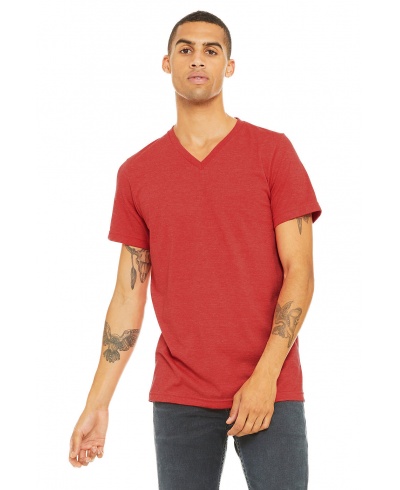 Dieses einfache, beliebte Unisex-T-Shirt verfügt über einen klassischen V-Ausschnitt, kurze Ärmel und hochwertige ringgesponnene Baumwolle, die als ultimative leere Leinwand zum Bedrucken dient.