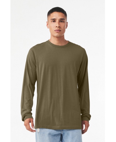 Dieses klassische Unisex-Jersey-T-Shirt sitzt wie ein beliebter Favorit und verfügt über einen klassischen Rundhalsausschnitt, lange Ärmel und hochwertige gekämmte und ringgesponnene Jersey-Baumwolle, die als leere Leinwand zum Bedrucken dient.