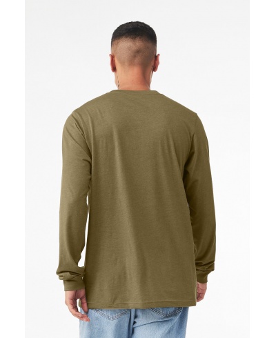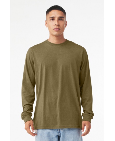 Dieses klassische Unisex-Jersey-T-Shirt sitzt wie ein beliebter Favorit und verfügt über einen klassischen Rundhalsausschnitt, lange Ärmel und hochwertige gekämmte und ringgesponnene Jersey-Baumwolle, die als leere Leinwand zum Bedrucken dient.