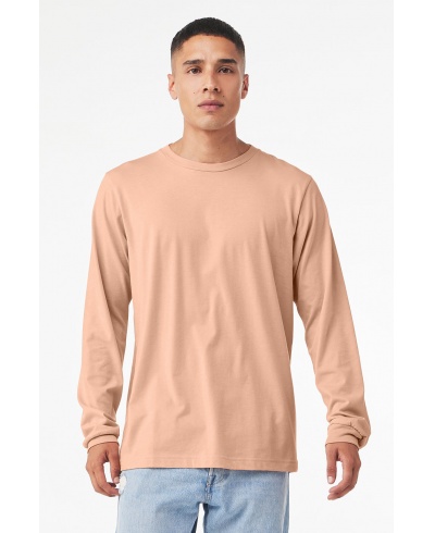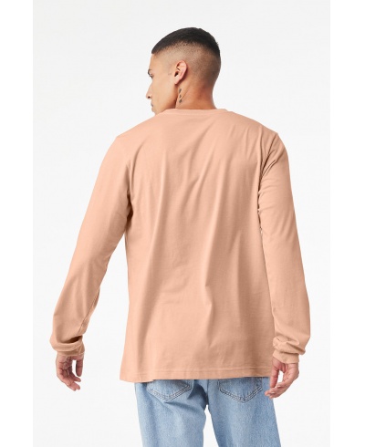 Dieses klassische Unisex-Jersey-T-Shirt sitzt wie ein beliebter Favorit und verfügt über einen klassischen Rundhalsausschnitt, lange Ärmel und hochwertige gekämmte und ringgesponnene Jersey-Baumwolle, die als leere Leinwand zum Bedrucken dient.