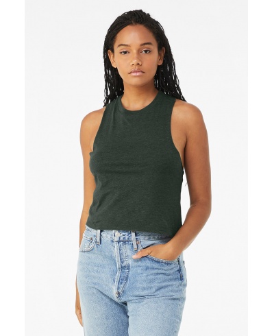 Dieses kurz geschnittene Racerback-Tanktop für Damen mit entspannter Passform verfügt über modern ausgestellte Armlöcher und einen Rücken mit rohen Kantendetails, was dieses Tanktop zu einem Must-Have macht.