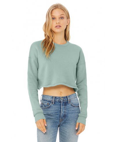 Ein klassisches Cropped-Sweatshirt für Damen aus bequemem, superweichem Fleece, das auf Wärme und Atmungsaktivität ausgelegt ist. Es hat eine abgesenkte Naht an den Schultern und eine Retail-Passform. Abgerundet mit gerippten Ärmelbündchen und einem ungenähten Saum.