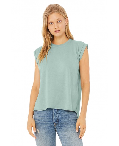 8804 Women's Flowy Muscle Tee With Rolled Cuff