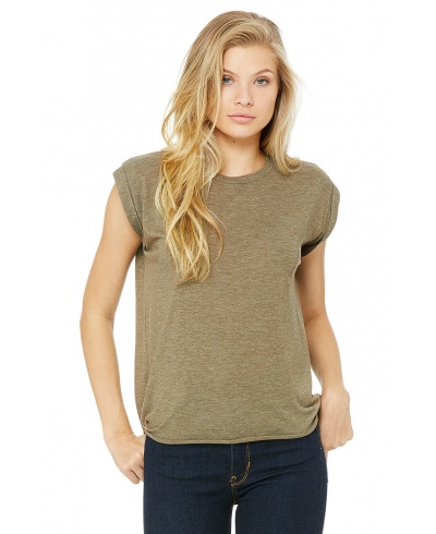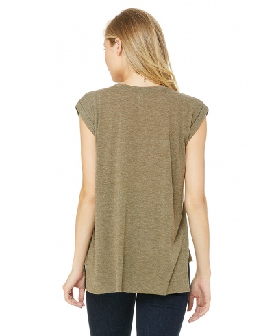 8804 Women's Flowy Muscle Tee With Rolled Cuff