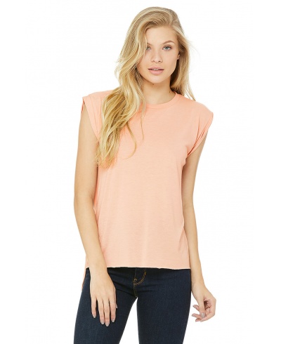8804 Women's Flowy Muscle Tee With Rolled Cuff