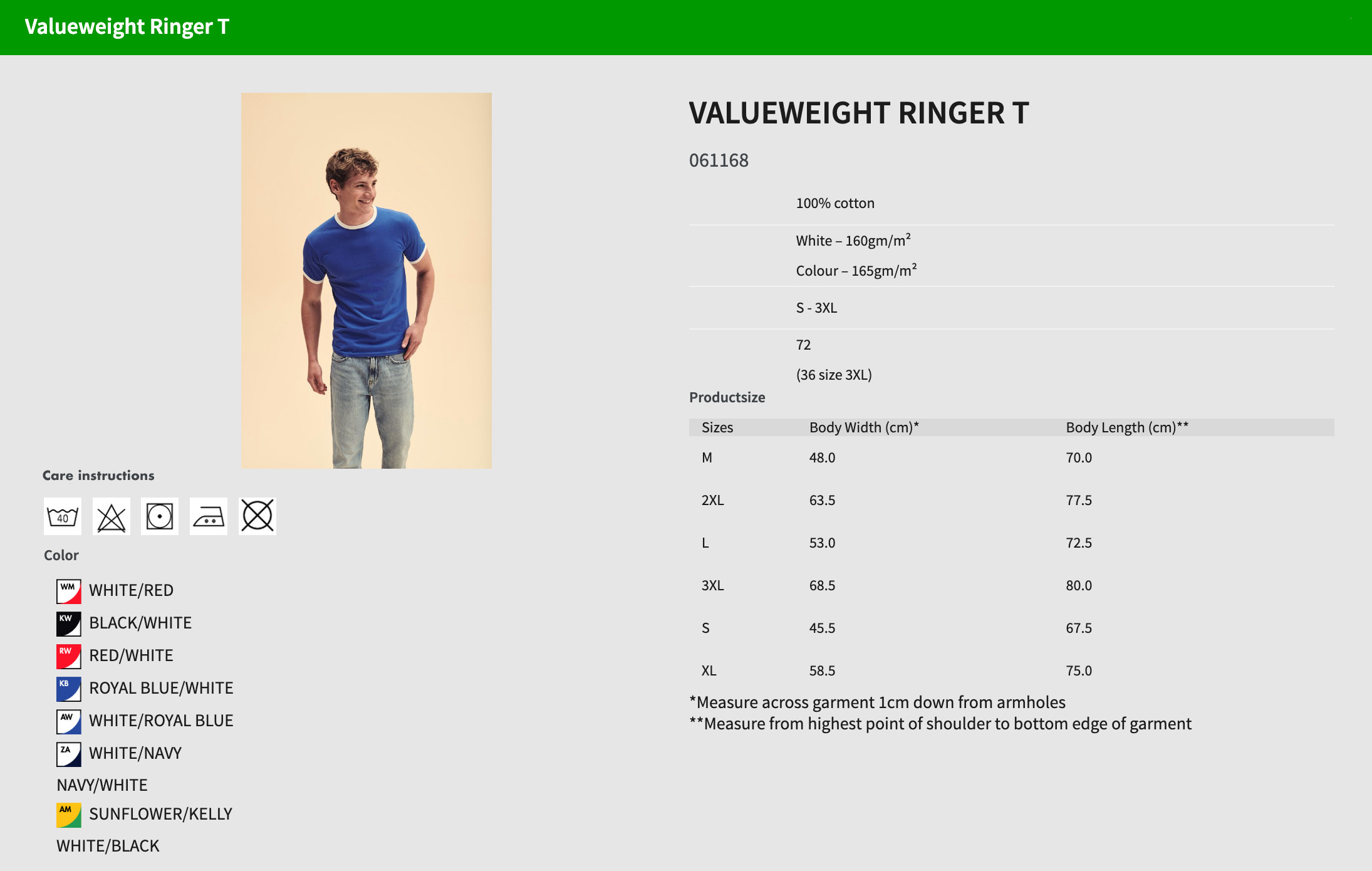 Material: 100 % Baumwolle; Gewicht: 165g/m² (Weiß 160g/m²); Rundhalsausschnitt in Kontrastfarbe mit Baumwoll-/LYCRA®-Ripp, Nackenband aus dem gleichen Stoff, Feinstrickstärke für bessere Bedruckbarkeit; Zertifikate: STANDARD 100 by OEKO-TEX®; WRAP