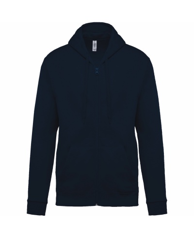 80 % Baumwolle / 20 % Polyester. Gebürstetes Fleece. Set-in-Ärmel. Schlauchware. Nylon-Reißverschluss. Gefütterte Kapuze mit Ton-in-Ton-Kordelzug. Kängurutaschen. Strickbündchen an Ärmeln und Saum.