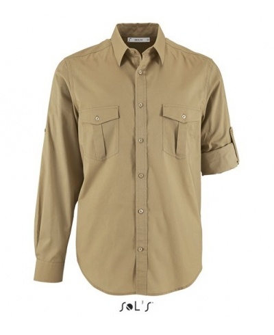 QUALITÄT: VORGEWASCHENE POPELINE - 100% Baumwolle; 110 g/m²; Gerader Schnitt, lange Ärmel, 2 aufgesetzte Taschen mit Pattenverschluss, Patte für Krempelärmel, Knopfleiste mit 7 Knöpfen