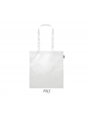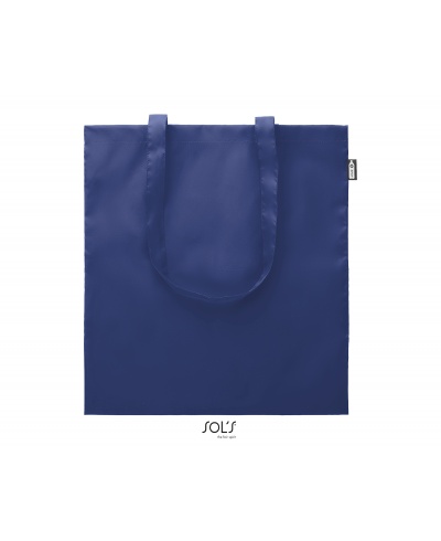 Die Tasche hat lange Henkel mit verstärkten Nähten.