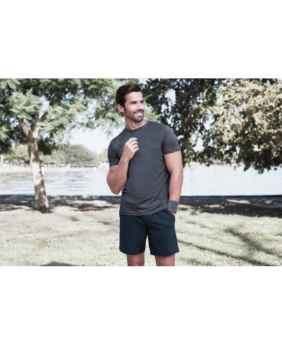 Material: 100 % ACTIVE-DRY° Polyester; Jacquard; Gewicht: 140 g/m²; ACTIVE-DRY°: schnelltrocknendes, feuchtigkeitsableitendes und atmungsaktives Material, Melange-Optik, dekorative Flatlock-Schulternähte, Kragen aus gleichem Stoff, Nackenband, Seitennähte, kleines Größenetikett im Nacken, Pflegeetikett in der Seitennaht, waschbar bei 40 °C; Zertifikat: STANDARD 100 by OEKO-TEX®