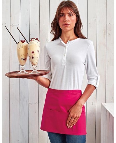 Diese Schürze mit kurzer Taille ist ein beliebter Schürzenstil, der in vielen Bars und Restaurants zu finden ist. Sie verfügt über drei offene Taschen und ist in 28 Farben aus der Premier „Colors Collection“ erhältlich. Die Taschen eignen sich ideal zum Tragen von Zahlungsterminals und Tablet-Geräten.
