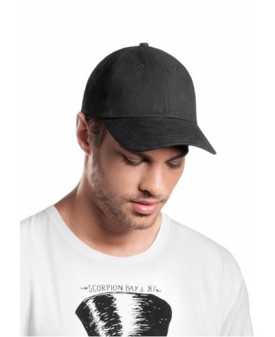 100 % dicker, gebürsteter Baumwollserge. 6 Panels. Tief sitzender Schirm. Verschluß mit Metallschnalle hinten.