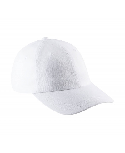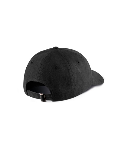 100 % dicker, gebürsteter Baumwollserge. 6 Panels. Tief sitzender Schirm. Verschluß mit Metallschnalle hinten.