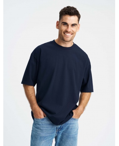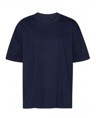 Es besteht aus ringgekämmter Baumwolle und hat eine übergroße Passform mit überschnittenen Schultern für einen bequemen und stilvollen Look. Der gerippte Rundhalsausschnitt und das Nackenband aus Elasthan sorgen für Strapazierfähigkeit, während der Rundhalsausschnitt für einen modernen Touch sorgt.