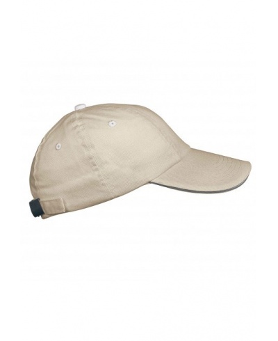 100% gebürstete Baumwolle. Ohne Mittelnaht. Kontrastnaht auf dem Schirm. Klemmverschluß.