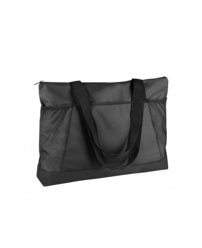 Tote Bag / Schultertasche aus 600D Polyester mit PVC-Beschichtung. Geräumiges Hauptfach und zwei kleine Netzfächer. Schulterriemen.