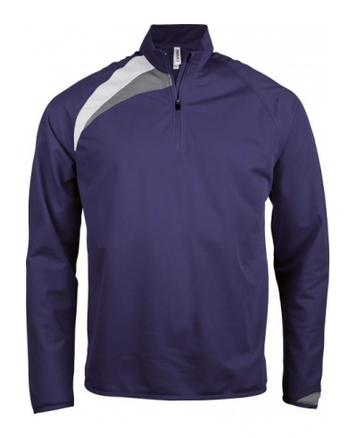 100% gebürstetes (Aucune suggestion) Polyester. 1/4 Reißverschluß am Kragen. Einsätze in Kontrastfarbe. Nähte Ton-in-Ton. Elastische Bündchen an Hüfte und Ärmeln.