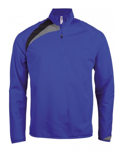 100% gebürstetes (Aucune suggestion) Polyester. 1/4 Reißverschluß am Kragen. Einsätze in Kontrastfarbe. Nähte Ton-in-Ton. Elastische Bündchen an Hüfte und Ärmeln.