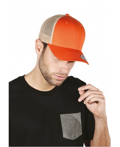 60 % Baumwolle / 40 % Polyester. 6 Felder. Hochwertiges Trucker-Modell im Retro-Stil mit Halbprofilschirm und versteiften, gleichfarbigen vorderen Feldern. Kunststoffriegel zur Weitenregulierung.