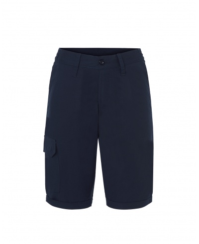 Bund mit seitlichen Gummibändern und Verschluss mit Knopf. Fünf Gürtelschlaufen und Reißverschluss passend zur Grundfarbe.