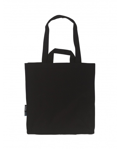 Material: 100% Bio-Fairtrade-Baumwolle, köperbindung; Gewicht: 210 g/m²; Schwere Köperbindung. Lange und kurze Griffe (60 cm; 24cm). Boden- und Seitenzwickel. An Spannungspunkten verstärkt. Größen: 35 x 38 cm; Neutral® & Fairtrade Flaglabels an der Seite