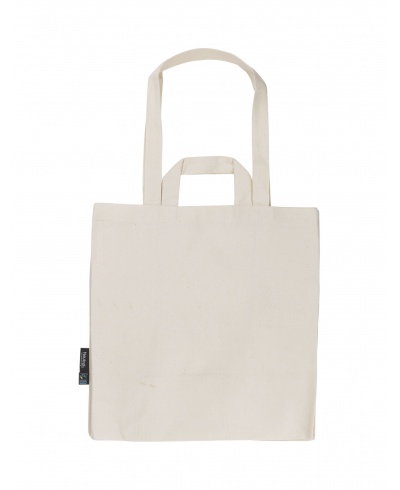 Material: 100% Bio-Fairtrade-Baumwolle, köperbindung; Gewicht: 210 g/m²; Schwere Köperbindung. Lange und kurze Griffe (60 cm; 24cm). Boden- und Seitenzwickel. An Spannungspunkten verstärkt. Größen: 35 x 38 cm; Neutral® & Fairtrade Flaglabels an der Seite