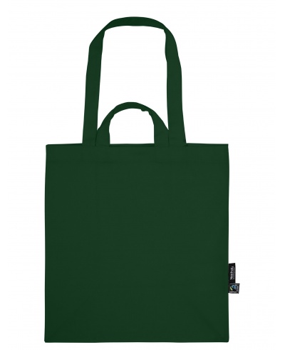 Material: 100% Bio-Fairtrade-Baumwolle, köperbindung; Gewicht: 210 g/m²; Schwere Köperbindung. Lange und kurze Griffe (60 cm; 24cm). Boden- und Seitenzwickel. An Spannungspunkten verstärkt. Größen: 35 x 38 cm; Neutral® & Fairtrade Flaglabels an der Seite