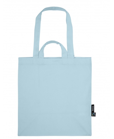 Material: 100% Bio-Fairtrade-Baumwolle, köperbindung; Gewicht: 210 g/m²; Schwere Köperbindung. Lange und kurze Griffe (60 cm; 24cm). Boden- und Seitenzwickel. An Spannungspunkten verstärkt. Größen: 35 x 38 cm; Neutral® & Fairtrade Flaglabels an der Seite