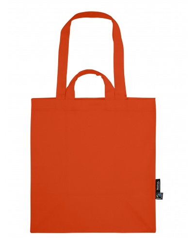 Material: 100% Bio-Fairtrade-Baumwolle, köperbindung; Gewicht: 210 g/m²; Schwere Köperbindung. Lange und kurze Griffe (60 cm; 24cm). Boden- und Seitenzwickel. An Spannungspunkten verstärkt. Größen: 35 x 38 cm; Neutral® & Fairtrade Flaglabels an der Seite